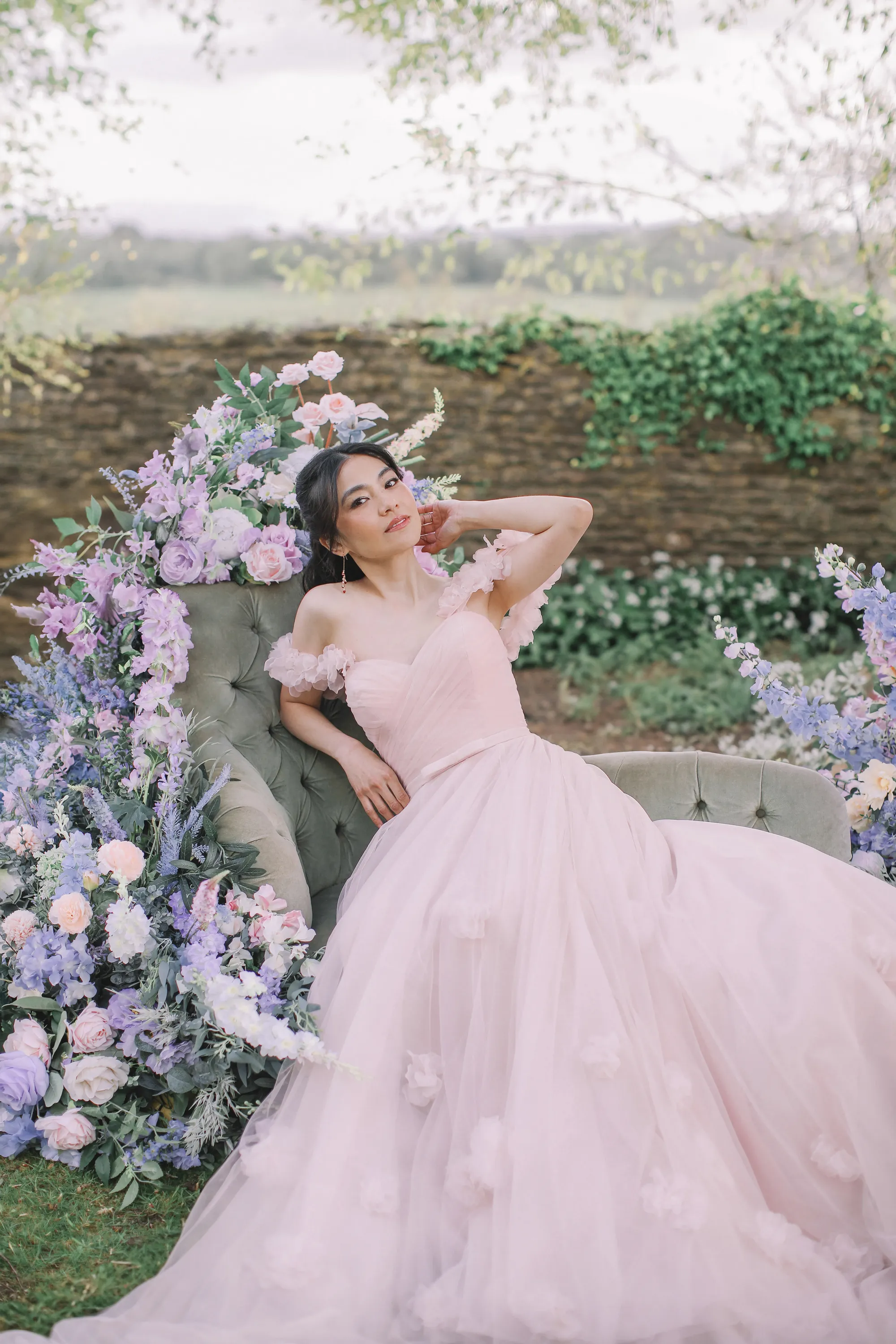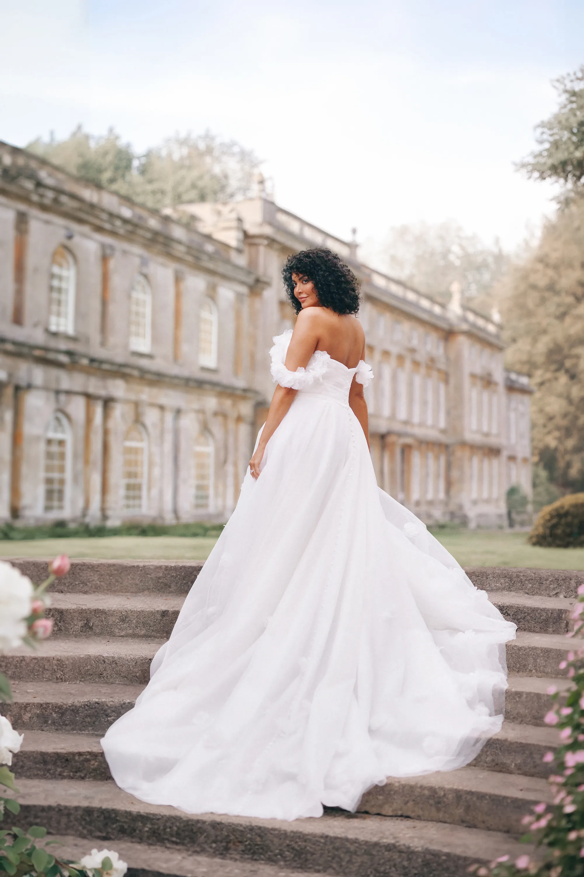 The Posey gown is a romantic A-line wedding dress crafted in airy tulle, adorned with delicate 3D floral appliqués that bloom across the skirt and straps. A strapless bodice with a natural waistline flows into a graceful, floor-length silhouette, while optional off-the-shoulder floral straps add a touch of whimsical charm. A soft bow detail completes the look, striking the perfect balance of sweetness and refinement. Much like Posey herself, this gown carries an enchanting charm—gentle, graceful, and destined to be remembered.